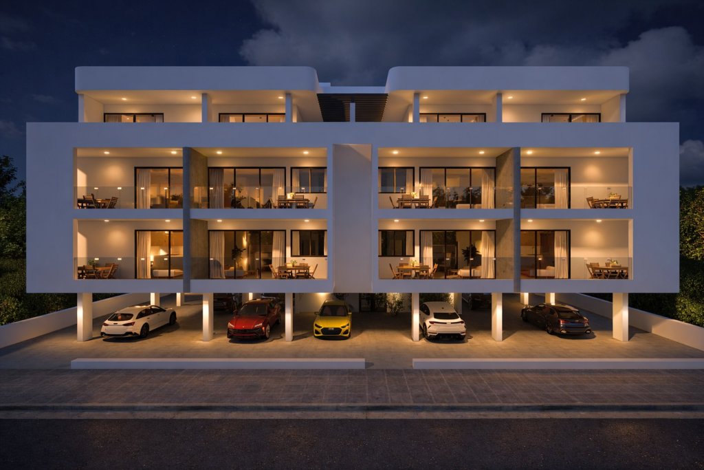 Welcome to a refined collection of modern residences, an elegant new development thoughtfully created for contemporary living in one of Larnaca’s most practical and well-connected locations. Positioned just minutes from the vibrant city centre, the project offers a harmonious balance between urban convenience and a sense of calm, with shops, restaurants, everyday services, and transport links all close at hand. It is a place where comfort, quality, and lifestyle come together effortlessly. The development features a selection of one- and two-bedroom apartments, each carefully designed to reflect modern elegance and everyday functionality. Bright, open interiors are enhanced by clean architectural lines, quality finishes, and a soft, neutral colour palette that maximises natural light and creates a welcoming, airy atmosphere. Architecturally, the building presents a contemporary minimalist aesthetic, defined by clean lines, subtle tones, and a well-proportioned low-rise profile. Generous balconies with glass balustrades extend the living spaces outdoors, enhancing openness and light, while the elevated ground floor adds both practicality and visual lightness. The overall design embodies modern Mediterranean sophistication, blending naturally into its urban setting.