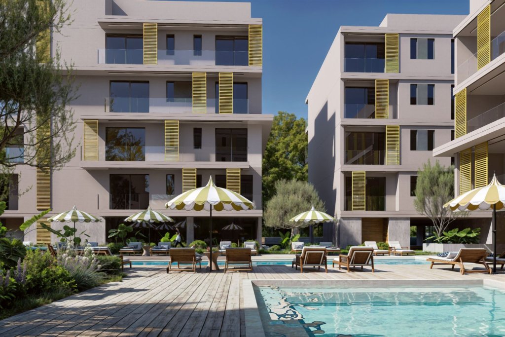 These luxurious two-bedroom apartments in an exclusive gated complex are located in the tourist area of Pafos. Enjoy the tranquility of a residential area combined with walking distance to all amenities, including beaches, shops, schools, and a shopping center. Each residence exemplifies modern luxury living, featuring spacious layouts and high-quality finishes. Specifications include VRV cooling, underfloor heating systems, laminate parquet, marble or Italian ceramic tile flooring. Safety is guaranteed with an alarm system, an intercom at the front door, and electric gates for car access. The complex offers diverse facilities for residents. For active lifestyles, there are indoor and outdoor gyms and a sizeable semi-Olympic swimming pool, while for more meditative activities one can find a secluded yoga and pilates area and refreshing green gardens. Additional amenities include a bar, barbecue area, exquisite restaurant, children’s swimming pool, and safe indoor and outdoor playgrounds. There is a comfortable workspace and a meeting room for digital nomads or business professionals. Life in this modern gated community is a statement of high social status, offering not just safety, privacy, and confidentiality, but also a sense of prestige and exclusivity.