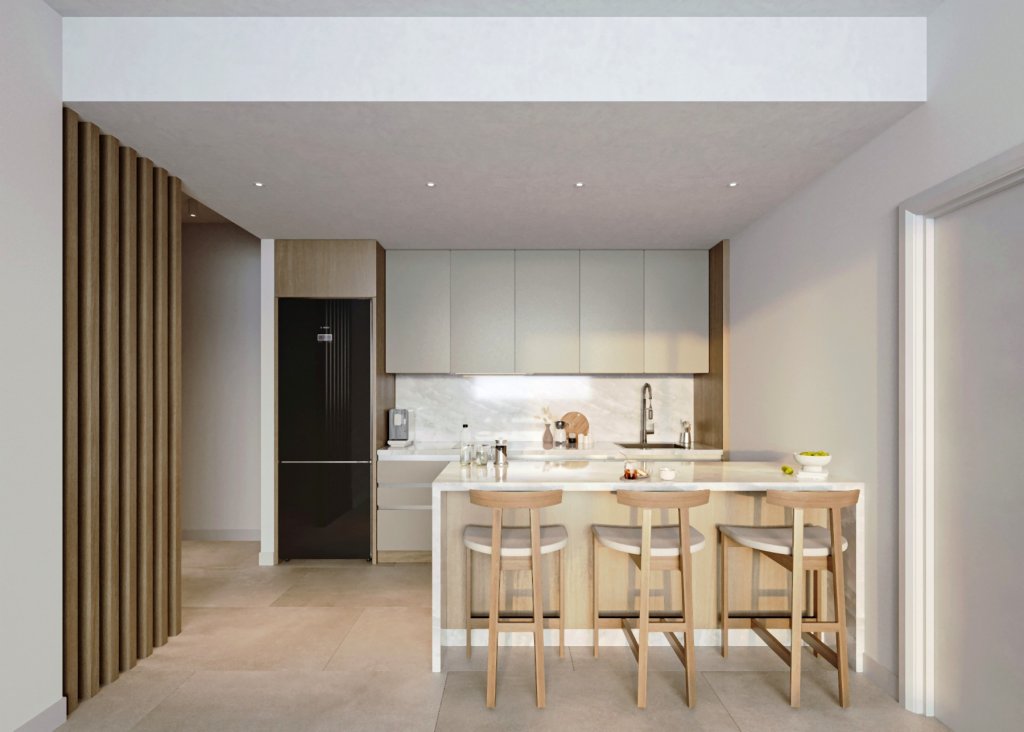 A refined residential address in the heart of Geroskipou, this contemporary development introduces a limited collection of elegant two-bedroom apartments designed for balanced modern living. Set within an established yet fast-evolving neighborhood, it offers the rare combination of residential calm and immediate access to the city’s coastline, services, and everyday essentials. The architecture is clean and confident, defined by generous verandas, landscaped surroundings, and thoughtfully proportioned interiors filled with natural light. Select top-floor residences are complemented by private roof terraces with covered BBQ areas and provision for jacuzzi installations, creating elevated spaces for entertaining or quiet retreat. Construction follows rigorous European standards, with reinforced concrete structure, advanced thermal insulation, and high-performance aluminum glazing. Energy Efficiency Class A, individual photovoltaic systems, solar water heating, split-unit climate control, and provision for underfloor heating ensure comfort with long-term sustainability. Private covered parking, dedicated storage, elevator access, and landscaped communal areas complete the offering. This is a project conceived for discerning buyers seeking architectural clarity, technical substance, and enduring investment value in one of Paphos’ most strategically positioned districts.