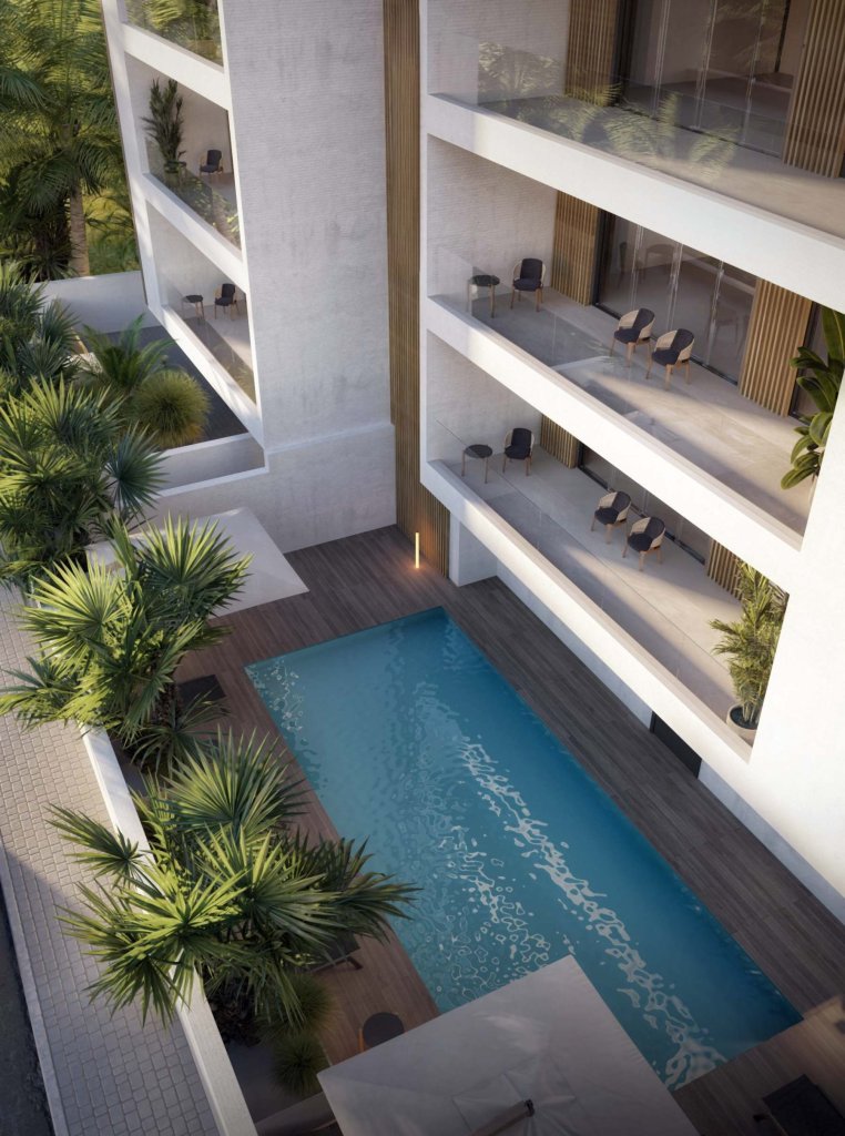 Set in the attractive Universal area of Paphos, this boutique residential development brings together calm urban living, refined architecture, and everyday convenience in one of the city’s most comfortable locations for leisure and infrastructure. Just a short drive from the sea, promenade, beaches, restaurants, and clubs, it also enjoys quick access to the harbour, central shopping, hospitals, and key municipal destinations. The project is designed as a private and thoughtfully composed residential environment, with only two apartments per floor, landscaped green areas, a swimming pool, and a sense of privacy that remains connected to a sociable way of living. Selected residences also benefit from sea views, while the rooftop is designed as an elevated outdoor space with a dedicated BBQ area. The architectural concept is complemented by clean, understated common areas and interiors inspired by natural textures and materials. Wood, stone, clay, wool, and linen shape a warm, tactile atmosphere that feels both contemporary and welcoming. This development offers a balanced lifestyle in a well-established neighbourhood, surrounded by quiet streets, daily conveniences, and a distinctly residential character.