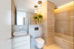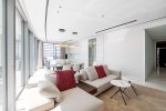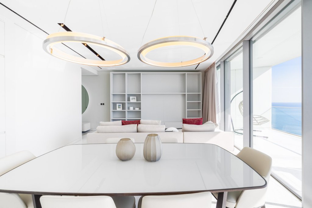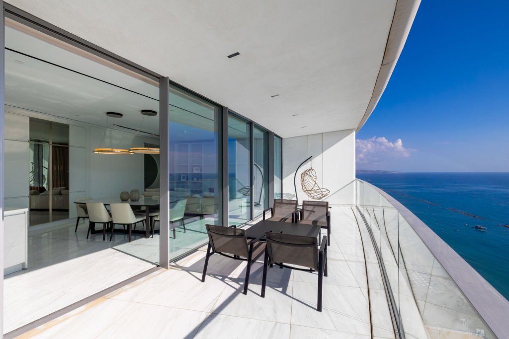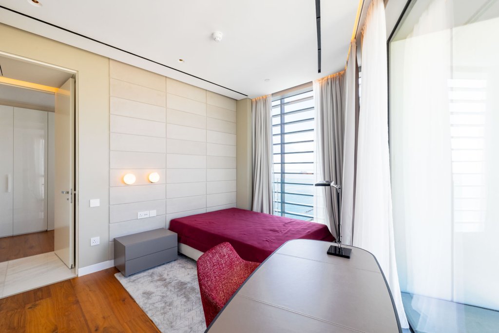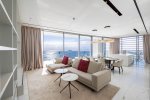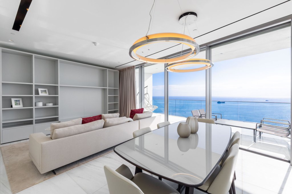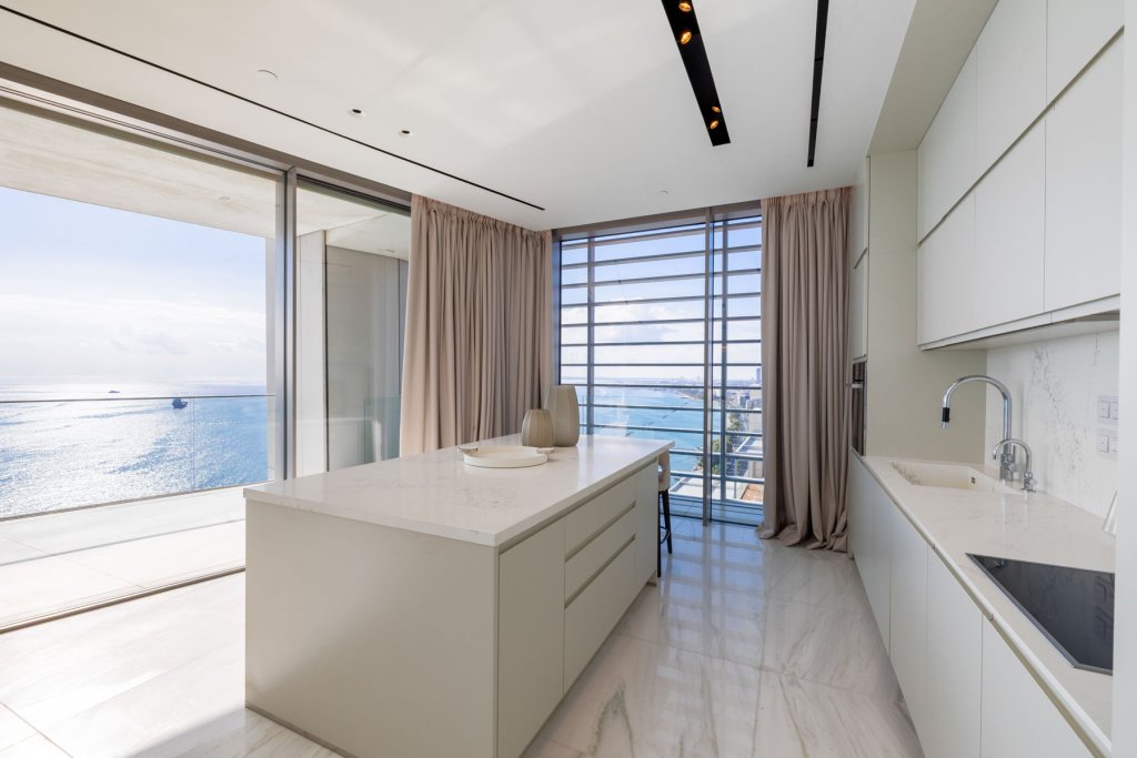 As you step into this luxury three-bedroom apartment, you are immediately struck by the uplifting levels of light, the incredible sea views, the open, generous spaces, and the refined detailing throughout. Warm meets cool in the interior design palette, where marble, glass, stone, and stainless steel create a fresh, modern feel, while natural woods and soft hues bring a sense of calm and comfort. Perfectly designed to elevated standards, this apartment feels exceptionally cozy and beautifully bright. Two of the three bedrooms come with their own stylish and inviting en-suite bathrooms, offering both privacy and elegance. The Italian-designed kitchen with Miele appliances and the feature walls of wood and stone further highlight the home’s commitment to quality. The bedrooms radiate warmth with parquet flooring, underfloor heating, and a discreet VRV system. Additional thoughtful features include abundant storage space, a separate walk-in wardrobe, and an independent laundry area. This is also a fully integrated smart home, where lighting, curtains, and even music can be conveniently controlled from a centralised touch screen, ensuring both comfort and effortless living.
