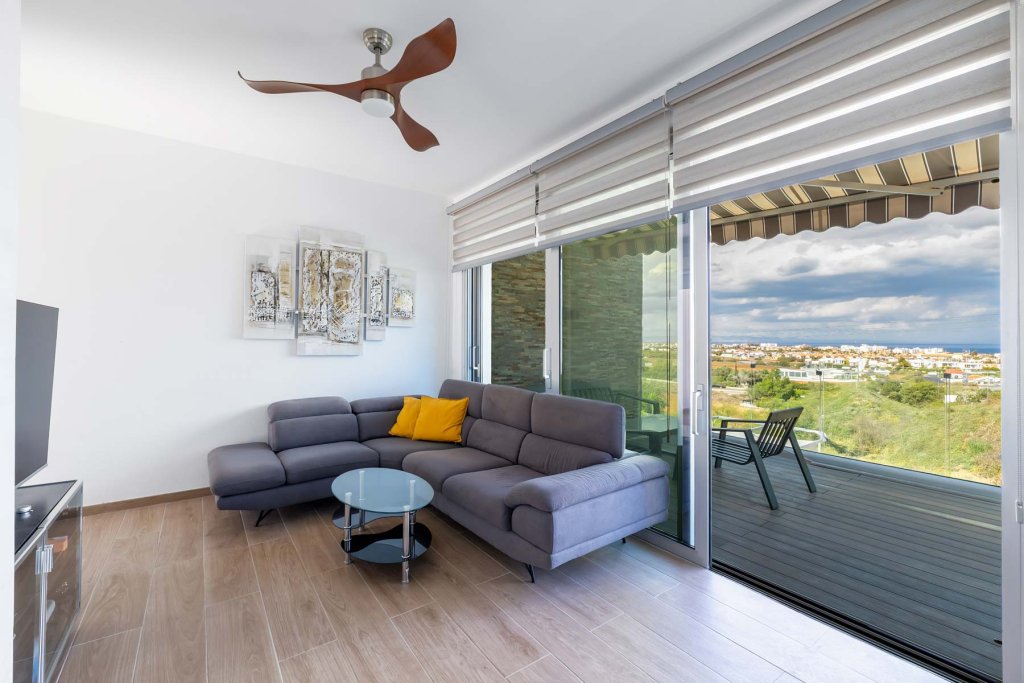 This modern three-bedroom villa is ideally located in the prestigious Hills of Saint Elias, one of the most desirable areas of Protaras. Just minutes from sandy beaches with crystal-clear waters and within easy reach of all amenities, it offers the perfect setting for both permanent living and holiday retreats. The residence is thoughtfully designed, featuring an open-plan kitchen, living, and dining area that flows seamlessly onto a spacious sea-view veranda - ideal for al fresco dining. The first level hosts one en-suite bedroom, while the lower level provides two additional en-suite bedrooms, ensuring both comfort and privacy. Outdoors, the villa boasts a private swimming pool with a cozy lounge area, creating the ultimate space for relaxation and entertainment. A spacious roof terrace further enhances the experience, offering refreshing breezes and spectacular sunsets. The property is equipped with modern specifications such as underfloor heating, a pressurized water system, and double-glazed windows, guaranteeing comfort and energy efficiency throughout the year. It is offered fully furnished and fitted with electrical appliances, allowing for immediate move-in. With its contemporary design, prime location, and strong rental potential, this villa represents an exceptional opportunity as both a family residence and a luxurious holiday home.