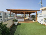 Discover this lovely three-bedroom penthouse in Germasogeia’s Dasoudi area, just 200 meters from the seaside. Situated on the 3rd floor of a three-story building, this property spans 297 sqm, including 140 sqm of internal space, 22 sqm of verandas, and a 135 sqm roof garden. Fully furnished and equipped with high-quality appliances, the penthouse is move-in ready and designed for comfortable, modern living. The layout includes a spacious, bright living room connected to a separate kitchen, three bedrooms (two en-suite), and an additional family bathroom. The highlight of this property is the large rooftop terrace featuring a pergola and jacuzzi—ideal for outdoor relaxation. Additional features include photovoltaic solar panels generating 4 kW of electricity, an energy-efficient heating system, covered parking, and a large storage room. Residents also enjoy access to a private swimming pool. This penthouse is an excellent investment or dream home. Title deed available!
