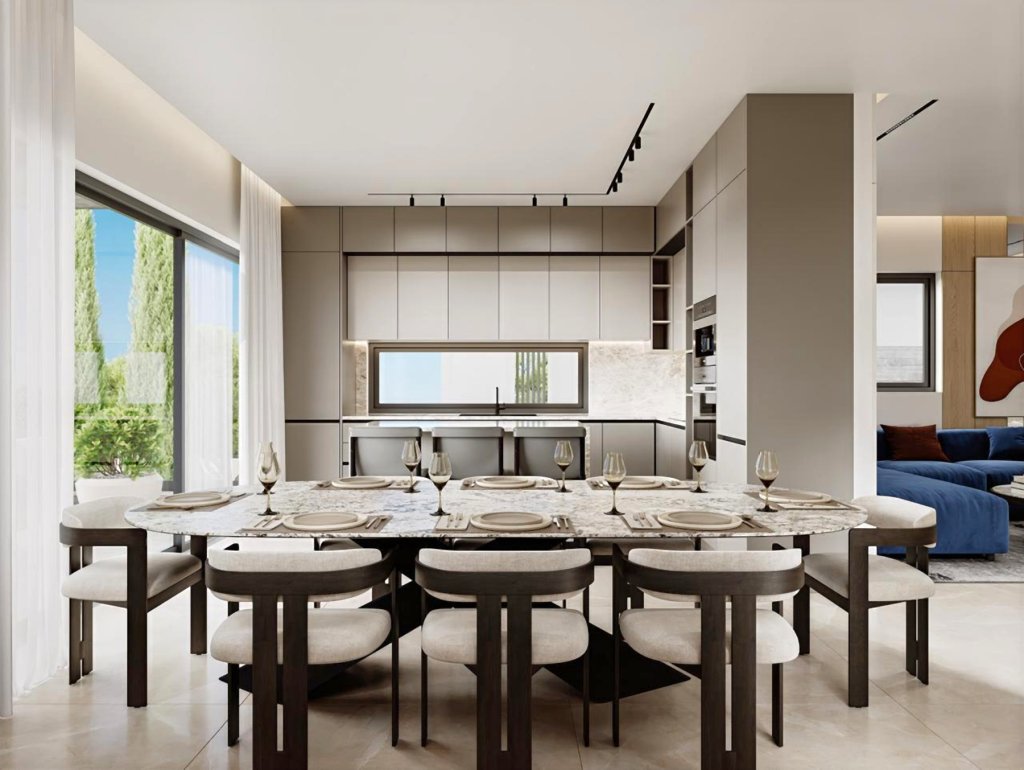This boutique residential project in Ayios Athanasios, Limassol, presents a limited collection of just two contemporary detached villas, designed to offer privacy, space, and a refined standard of modern living. Each residence unfolds across three levels, with a carefully structured layout that balances functionality and comfort. The main living areas are arranged with an open-plan concept, combining the kitchen, dining, and lounge spaces into a cohesive environment filled with natural light. The upper level accommodates well-proportioned bedrooms, including a master suite with en-suite facilities, creating a comfortable and private living zone. The lower level introduces additional versatility, including auxiliary spaces that can be adapted for various lifestyle needs, enhancing the overall practicality of the home. Outdoor areas are equally considered, featuring private swimming pools, landscaped surroundings, and dedicated relaxation spaces. The villas are finished with high-quality materials and incorporate modern construction standards, including underfloor heating, photovoltaic systems, and thermal insulation, ensuring energy efficiency and year-round comfort. Positioned in a quiet yet well-connected area, close to schools, medical facilities, and city access, this project offers an attractive opportunity for both family living and long-term investment.