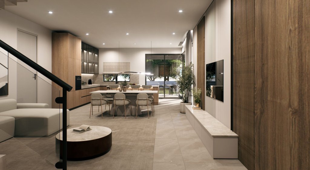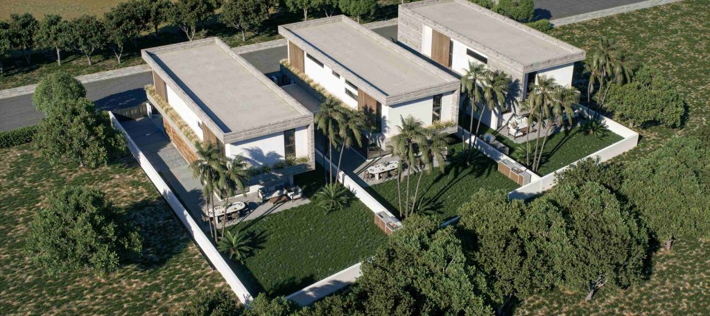Located in the heart of Deryneia, one of the most developed and charming areas of Famagusta, this new development comprises two stylish modern homes that perfectly combine privacy, tranquility and a favourable location. Schools, shops and cosy cafes are just a short walk away, while the sea and sandy beaches are only a ten-minute drive away. Each villa features three spacious bedrooms and an open-plan layout that seamlessly connects the kitchen, living, and dining areas into one bright, inviting space. Large panoramic windows fill the home with natural light and offer beautiful views of the private garden. Owners also have the option to add a swimming pool — a perfect spot for family time or entertaining guests. Constructed using top-quality materials and the latest technologies, these homes boast Class A energy efficiency, a modern air conditioning system, solar panels, thermal and acoustic insulation, and double-glazed windows — ensuring year-round comfort and reduced energy costs. A private covered parking space adds additional convenience. This project is an ideal choice for both permanent family residence and smart property investment in Cyprus.