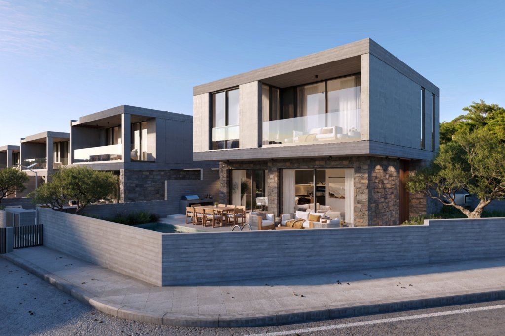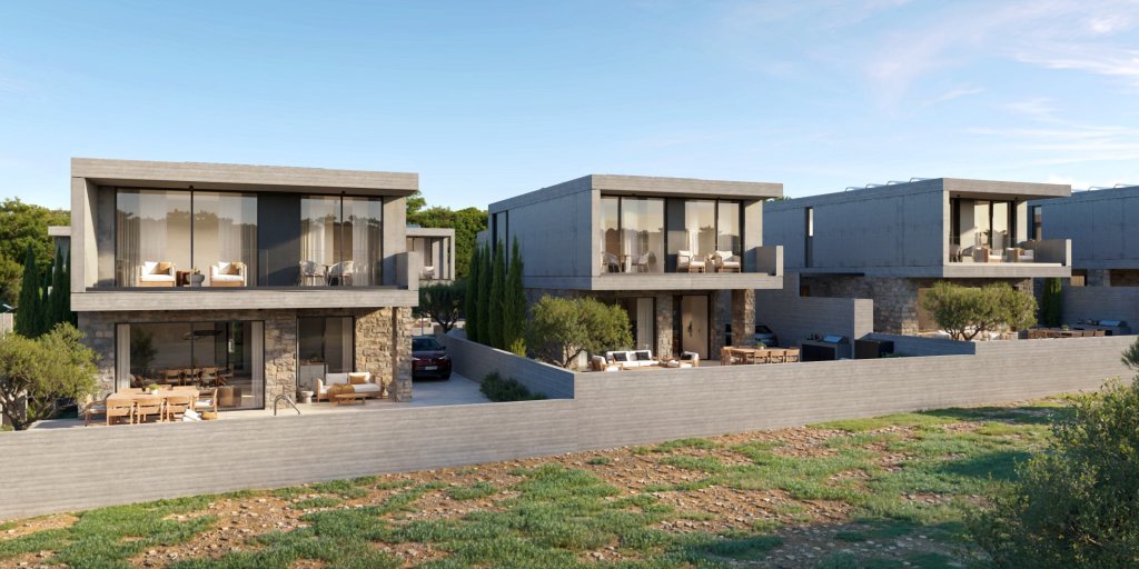 Set in the heart of Geroskipou, one of Paphos’ most desirable and fast-growing districts, this boutique gated community introduces a modern approach to Mediterranean living. Clean architectural lines, generous outdoor areas and private covered verandas give each three-bedroom villa a sense of openness and ease, while the peaceful surroundings remain minutes from beaches, schools, shopping centres and leisure venues. The homes are designed for comfortable year-round living. Provisions for underfloor heating allow owners to integrate a complete system according to their preferences, while split-unit cooling ensures a pleasant climate during the warmer months. High-performance thermal aluminium frames and double glazing support excellent energy efficiency, aligned with the project’s Class A specification. Each villa includes a private swimming pool, a dedicated BBQ area, covered parking, and provisions for an electric vehicle charger, electric shutters, CCTV and an alarm system. Built-in sanitation and well-organised infrastructure further enhance daily convenience. With its contemporary architecture, sustainability-focused features and privileged location, the development presents a compelling choice for both personal living and long-term investment.
