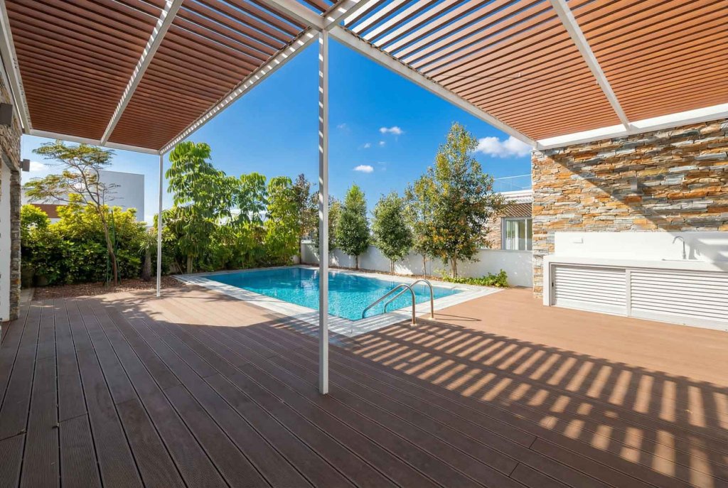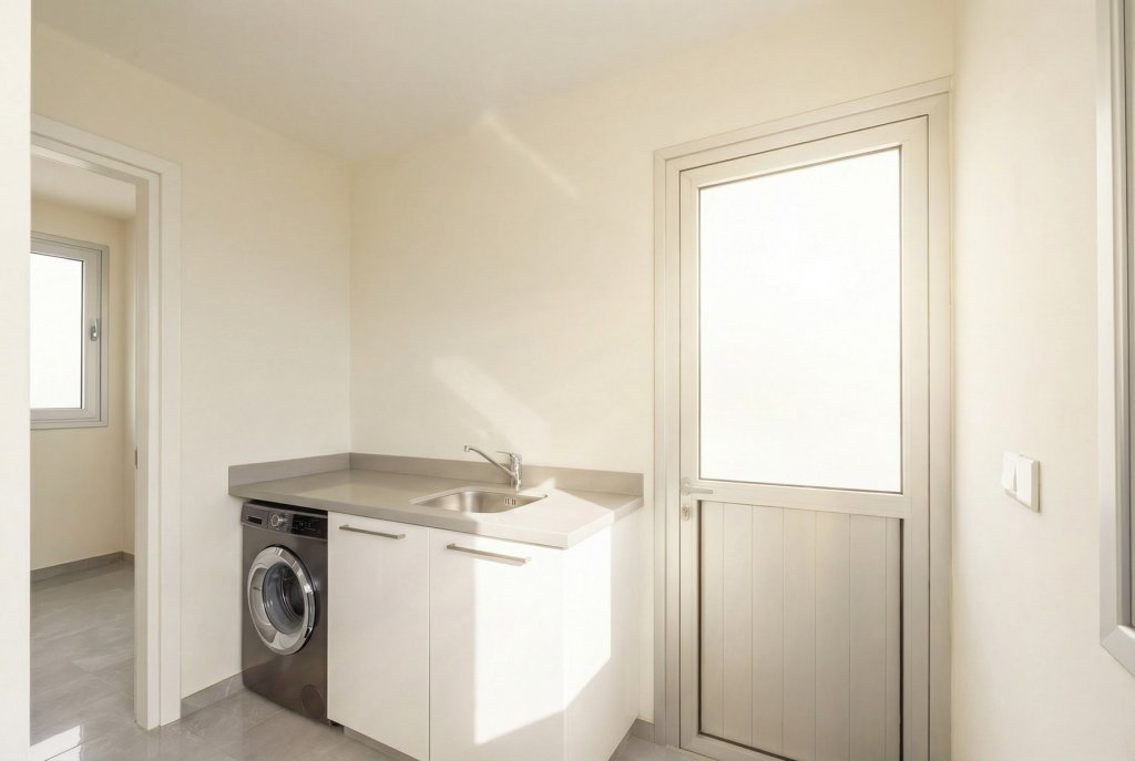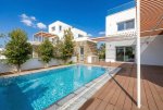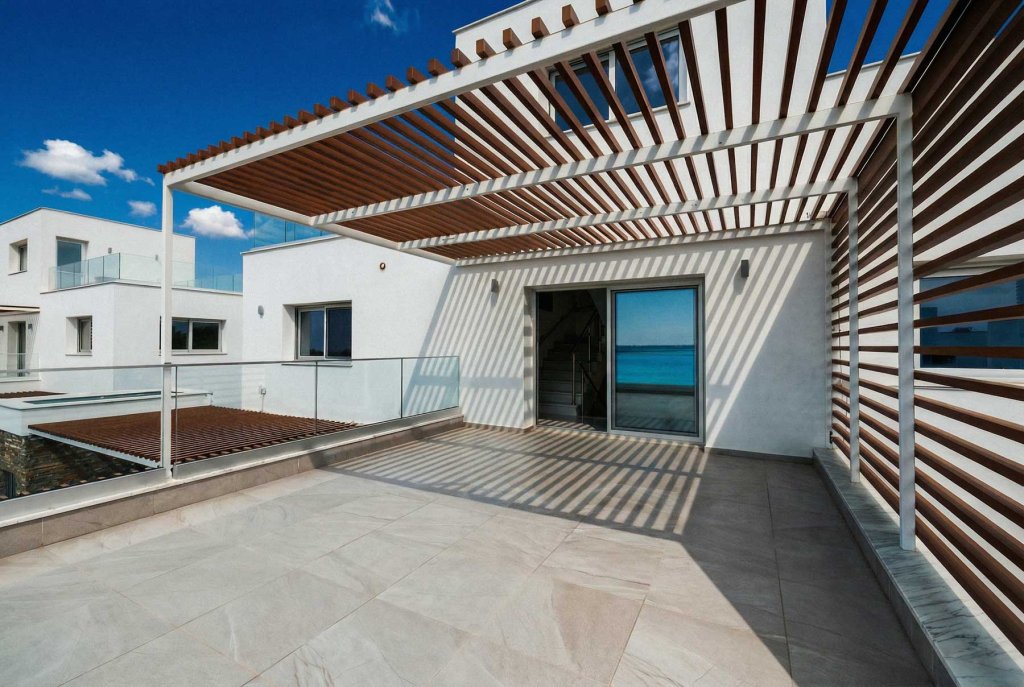 This beautiful three-bedroom residence is ideally located in the sought-after area of Paphos, Geroskipou, just 300 metres from the sea and within easy walking distance to the sandy beach. Designed for comfortable modern living, the property offers a well-balanced layout across three levels, complemented by outdoor spaces and sea views. The ground floor features a bright open-plan living and kitchen area, along with one en-suite bedroom, making it ideal for guests or convenient single-level living. Large openings connect the interior to a mature, landscaped garden, where a private swimming pool and dedicated BBQ area create the perfect setting for outdoor relaxation and entertaining. An external storage room adds valuable practicality. On the second floor, there are two additional en-suite bedrooms, both enjoying access to a spacious veranda with beautiful sea views. The third floor boasts an impressive roof garden, offering panoramic sea views and an exceptional space for entertaining, sunbathing, or simply enjoying Cyprus sunsets. Additional features include covered parking and a well-maintained, established garden, making this property an excellent choice for a permanent residence, holiday home, or investment opportunity.