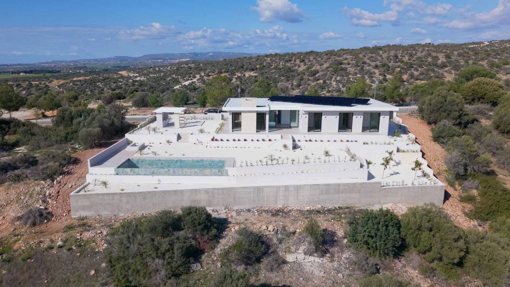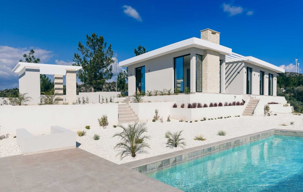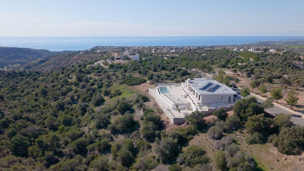 Situated in the exclusive Secret Valley golf resort area, this stunning single-level bungalow offers unmatched sea views and a perfect balance of privacy and accessibility. Adjacent to a protected natural area, the villa guarantees unobstructed, breathtaking views of the Mediterranean and nearby golf courses. Its premium location provides easy access to the highway, Aphrodite Hills resort and Kouklia, while being just 15 minutes from Pafos. The thoughtfully designed layout features spacious bedrooms, each with its own en-suite bathroom, ensuring comfort and privacy. The master suite offers added indulgence with a luxurious bathroom, a dressing room, and a separate laundry area. Every detail has been carefully considered, from built-in appliances to generously sized wardrobes and elegant finishes throughout. The outdoor areas are equally impressive, boasting a fully equipped summer kitchen, a barbecue area with a gas grill, and an infinity pool with an automatic refill system, perfect for relaxing or entertaining while enjoying the spectacular views. Equipped with advanced "smart home" technology, surveillance cameras, an alarm system, heated floors, and a VRF duct system, the villa provides ultimate comfort and peace of mind.