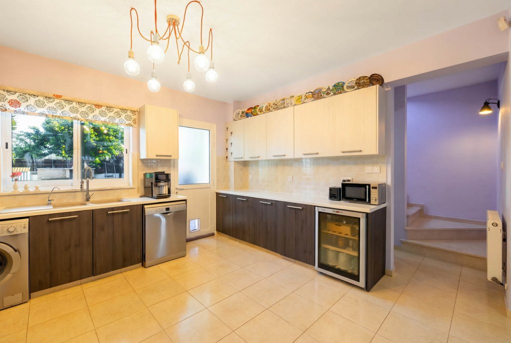 If you are dreaming of living in a warm, charming home filled with care and comfort, this property is definitely worth your attention. This lovely three-bedroom house offers everything needed for a comfortable and harmonious lifestyle. All bedrooms are located on the second floor, featuring high ceilings, generous proportions, and private balconies that fill the rooms with natural light and a sense of openness. The master bedroom benefits from its own en-suite bathroom, providing privacy and everyday comfort. The ground floor welcomes you with a spacious living area, perfect for family gatherings and entertaining, as well as an impressively sized kitchen, ideal for cooking and spending quality time together. A true highlight of the property is the mature, beautifully maintained garden, lovingly cultivated over the years. During the hot summer months, it provides natural shade and creates a serene atmosphere around the private swimming pool — a perfect retreat for relaxation. The house is equipped with central gas heating, ensuring warmth during the winter, and new air-conditioning units, allowing you to stay comfortable throughout the summer. The location combines everyday convenience with a sense of calm: Paphos International School is just a short drive away, a Greek primary school is reached within minutes, and the coastline can be accessed in around fifteen minutes by car. Situated in a quiet and tranquil neighborhood, this home is ideal for those who value privacy and a calm lifestyle. The property has never been rented, and from the moment you step inside, you immediately feel the sense of warmth, comfort, and genuine homeliness that makes this house truly special.