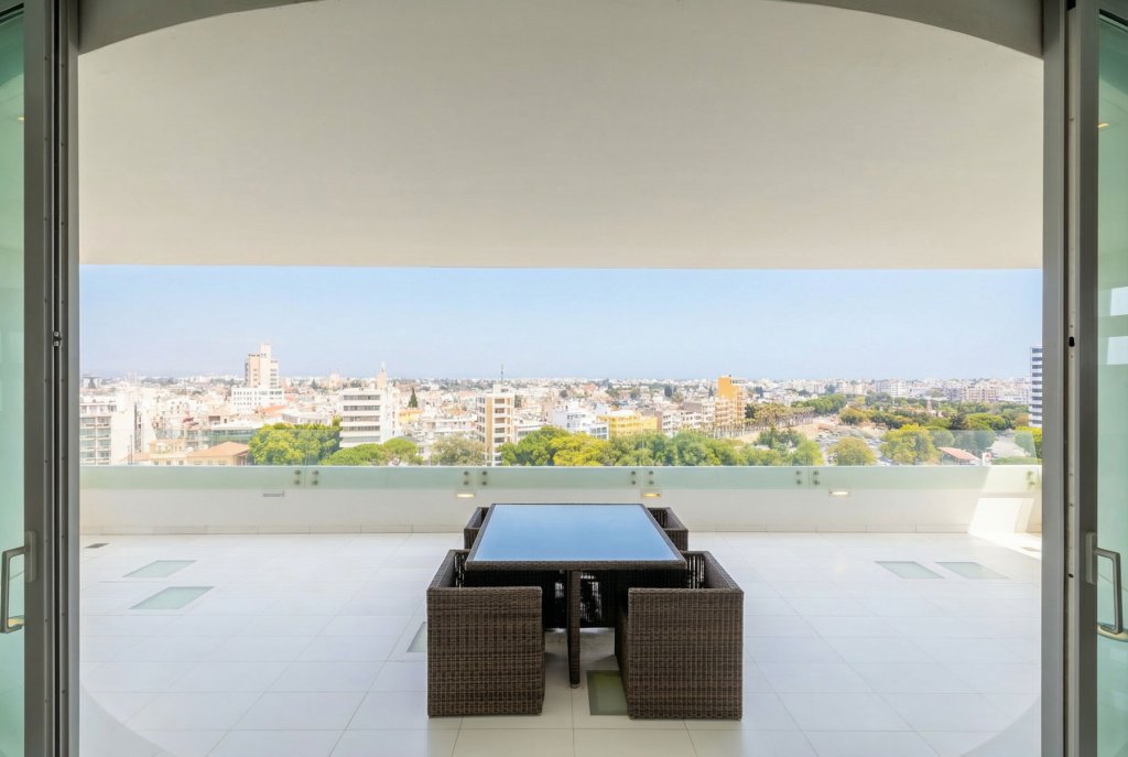 This impressive full-floor residence in the heart of Nicosia combines exceptional privacy, spacious living space, and sophisticated elegance. Beautifully maintained and presented in excellent condition, the apartment spans approximately 290 sqm of internal living area, featuring three generously sized bedrooms along with expansive living and dining areas designed for both comfort and style. Floor-to-ceiling windows capture breathtaking panoramic views across Nicosia, filling the interiors with abundant natural light and creating an elegant atmosphere ideal for everyday living as well as entertaining guests. The apartment is offered unfurnished and includes three covered parking spaces and a private storage room. Additional features include a separate laundry room, underfloor heating, and air-conditioning units throughout, ensuring comfort in every season. With its well-balanced layout, generous proportions, and quality finishes, this residence represents an outstanding opportunity for buyers seeking a premium city home with privacy and spectacular views.
