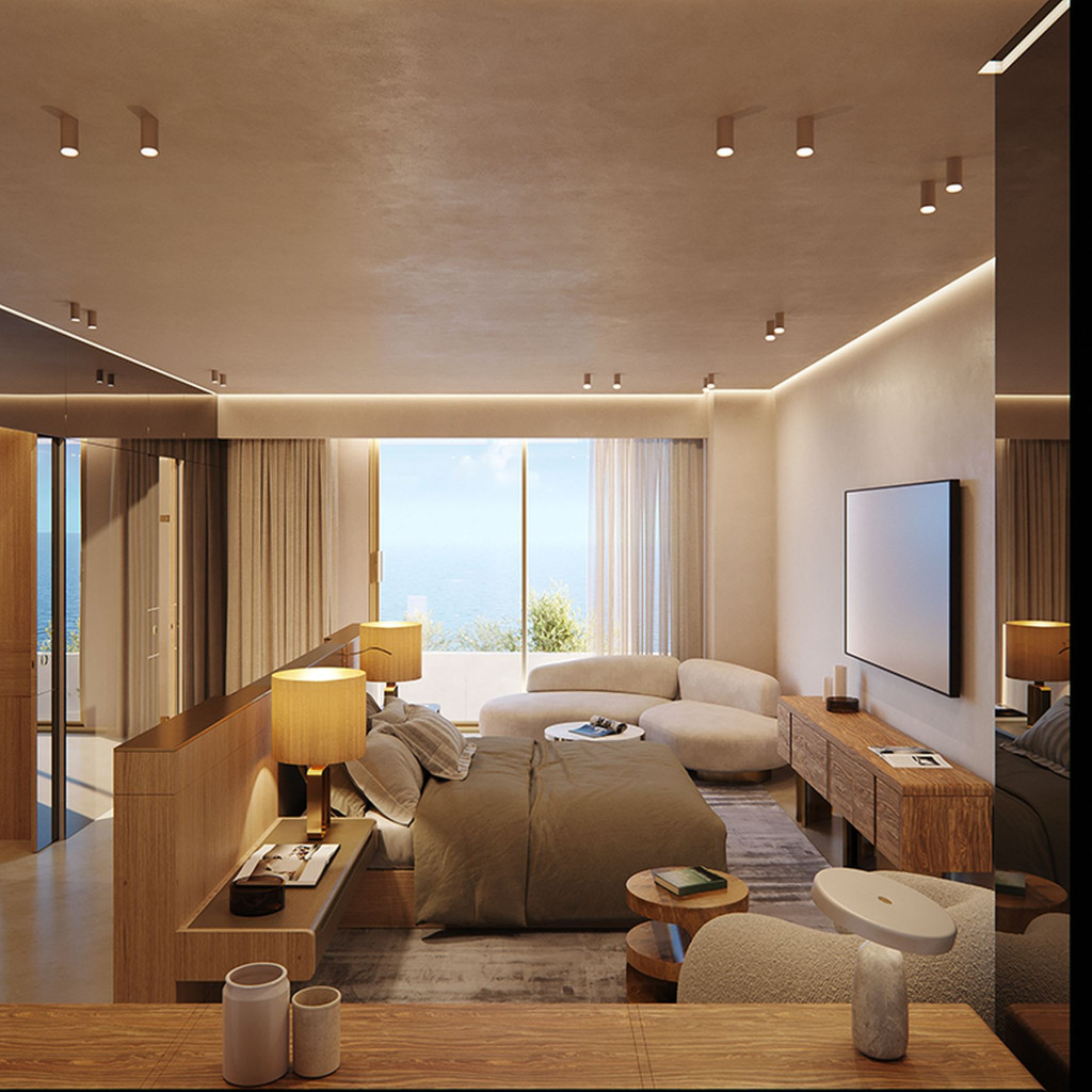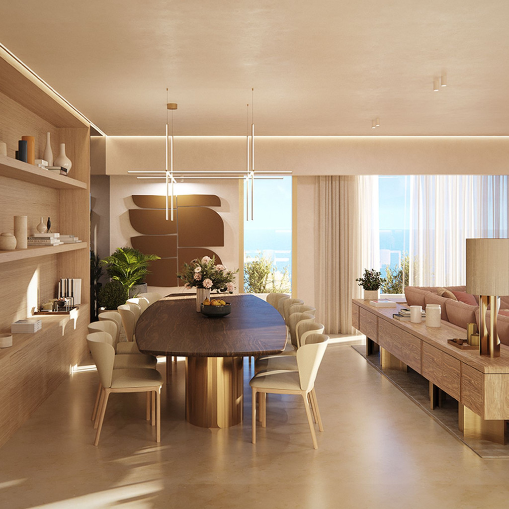 Nestled along the sandy coastline of Limassol lies a luxurious beachfront destination that exudes elegance and understated glamour. The residences are finished to the highest standard, prioritizing security to ensure that residents own an asset that is protected wherever they might be in the world. The collection has the look and feel of a private members’ club, an exclusive enclave tucked away from the bars, restaurants, boutiques, and nightlife of Limassol. Designed by Parisian aesthete Thierry Lemaire, the apartments, inspired by the art deco influences, feature muted tones of marble and wood, complemented by glimmers of copper and gold tones that mimic the effect of the Cyprus sun. The open-plan design of one, two, and three-bedroom apartments creates an ideal entertaining space with sunlit terraces that offer mesmerizing sea views. A variety of apartment layouts with individual design tweaks cater to residents' different lifestyles and needs. The complex offers all the frills of a luxury lifestyle residence, including a stylish designer lobby, large overflow salted water swimming pool, SPA and wellness centre with sauna, hammam, heated indoor pool and a lot more to make you feel relaxed and pampered.