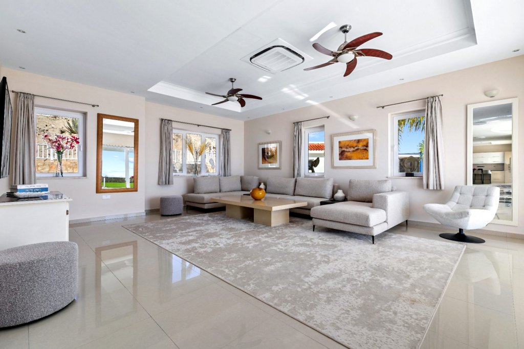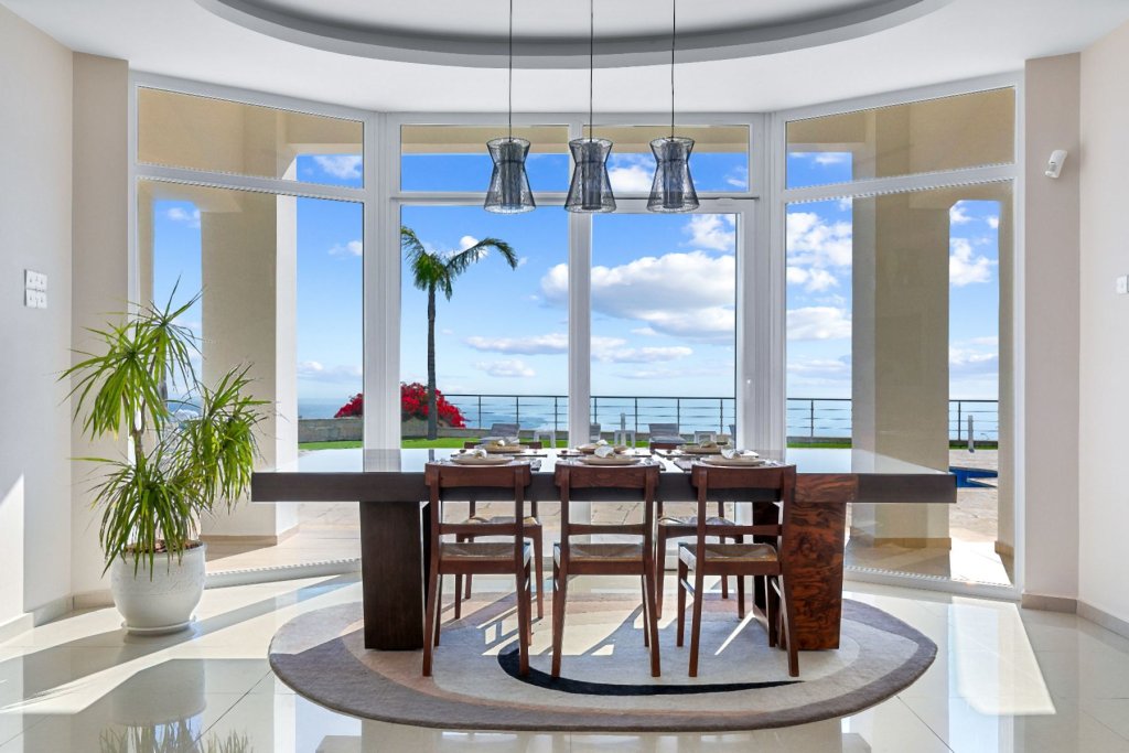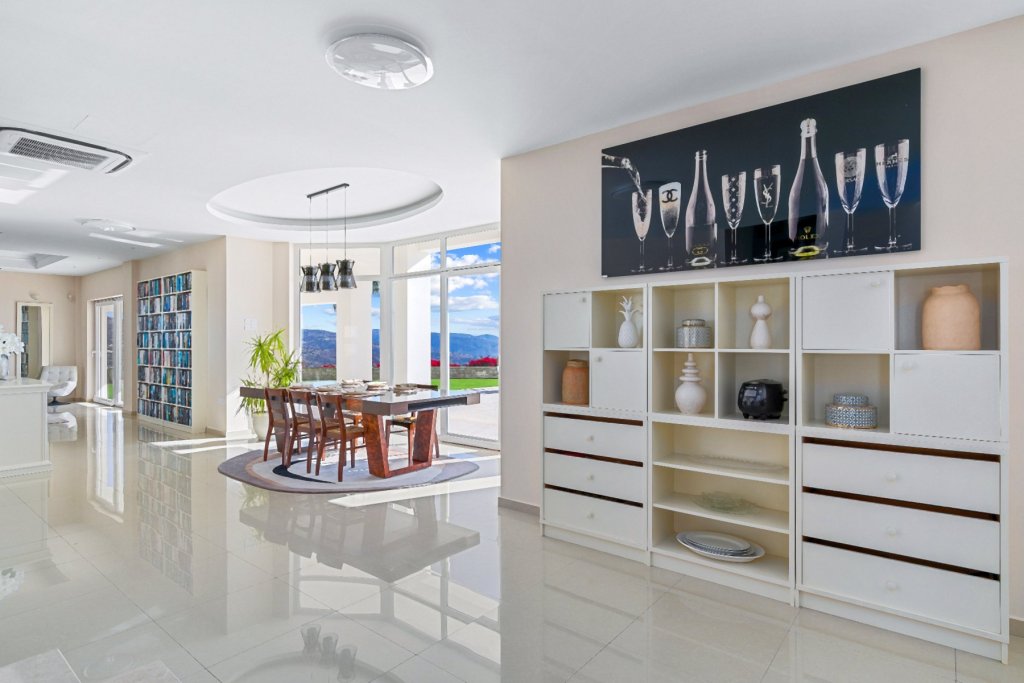 This newly renovated Mansion offers a luxurious escape with panoramic sea views. Imagine a luxurious 4-bedroom Palace with superior privacy, the best air quality and the most beautiful sea views in Cyprus. The house is constructed with the highest building technical standards, and all installation systems are of high quality. The living room, the dining spaces & kitchen area form an open, coherent unit in Scandinavian style. The high ceilings emphasize the Mansion's elegance. From the entire ground floor, the sea view is stunning. The large upstairs bedrooms are open to a vast terrace overlooking the coast. The airy master bedroom has a large ensuite luxurious bathroom and a spacious walk-in closet. Nested in an exclusive and private location the Palace features a heated magnesium swimming pool. The property ensures the ideal weather, being above the humidity level with a constant light sea breeze during summer. This Mansion border Zone H5 (30 % Building Coefficient and 20 % Coverage). At next Zone-upgrade this property can be classified Zone H5 becoming residential land with possibilities to double the covered areas.