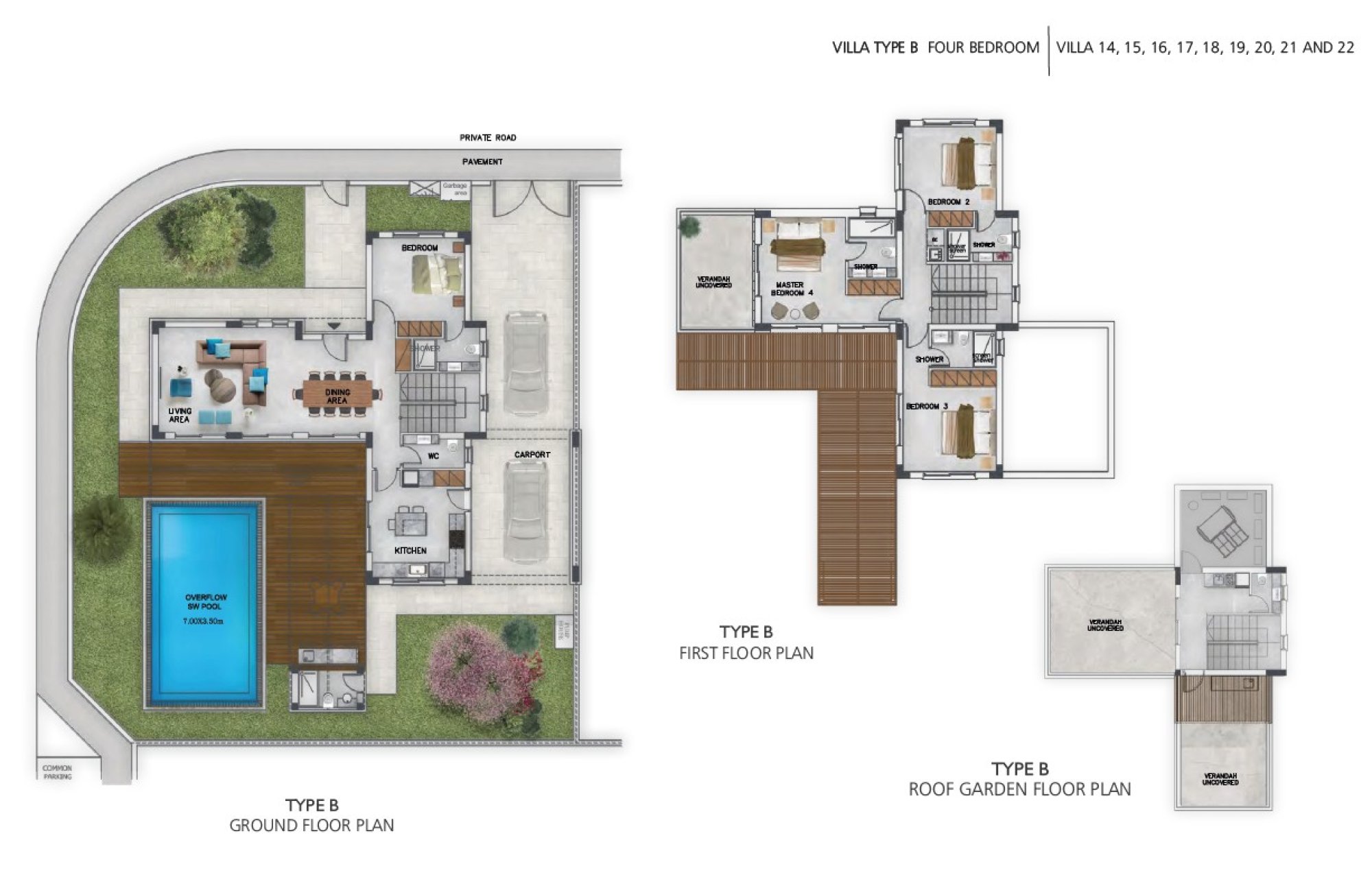 Set within the heart of the tourist district and only a short walk from the shoreline, this residential collection introduces three-, four-, and five-bedroom detached homes framed by mature greenery and a calm, established setting. Each residence carries a distinct architectural presence, defined by the interplay of natural materials such as wood and stone, bringing together traditional Mediterranean character with a modern sense of space and comfort. Interiors are bright and well-proportioned, with selected imported marble used for the internal staircase, quality ceramic finishes, and layouts designed for easy everyday living. The outdoor environment continues the same balance of aesthetics and practicality. Private gardens, swimming pools, shaded pergolas and barbecue areas create natural spaces for relaxation, while the roof gardens - uncovered as well as covered ones included in the internal covered areas - grant magnificent views. The location is one of the project’s strongest qualities. Everything that supports a convenient coastal lifestyle lies close at hand - Blue-Flag beaches, local shops and cafés, essential services, schools, hospitals, golf courses, and five-star resorts. With direct access to main highways and Pafos International Airport only a short drive away, the setting combines comfort, accessibility, and a distinctly Mediterranean sense of place.
