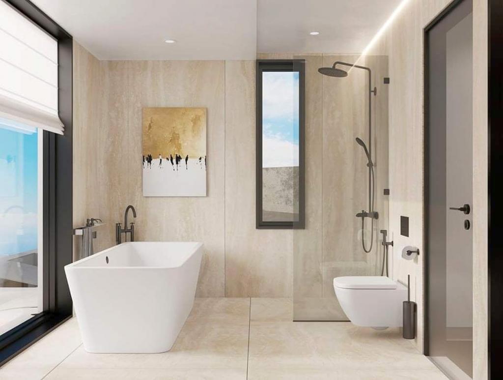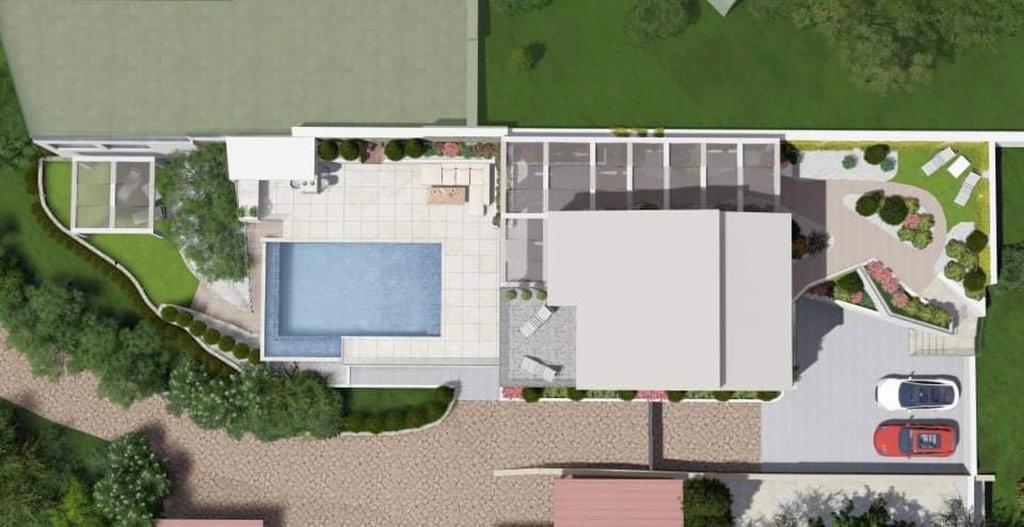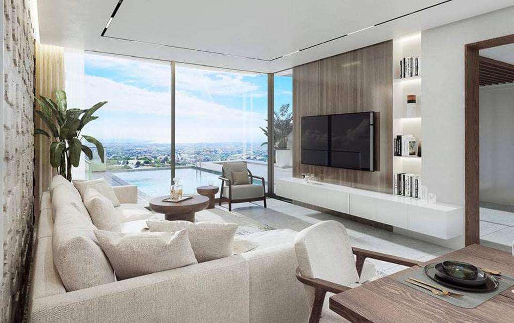 If you are looking for breathtaking unobstructed panoramic sea views, this spectacular 4+bedroom house in Tala’s Melissovouno is perfect. Situated on a high elevation more than 600 m above the sea level, the house offers lovely breezes combined with greenery and views. The driveway takes you to the parking space which is at the same level as one of the guest bedrooms, slightly separated from the main house. Upon entering, you are faced with an open plan living and kitchen area, with a home office wisely extending the space. The master bedroom is on the entrance level – it’s panoramic views decorate the en suite bathroom as well. The upper level has 2 guest bedrooms boasting sea views, sharing a family bathroom. The pool area has been designed around the living area and has a stylish outdoor seaview bar, BBQ area and, of course, infinity edge pool merging with the sea view. The house is a full and thorough renovation project and will be delivered to buyer fully completed with some of the fittings and materials still subject to taste of the buyer. The delivery is possible within 3 months from commitment of the buyer.