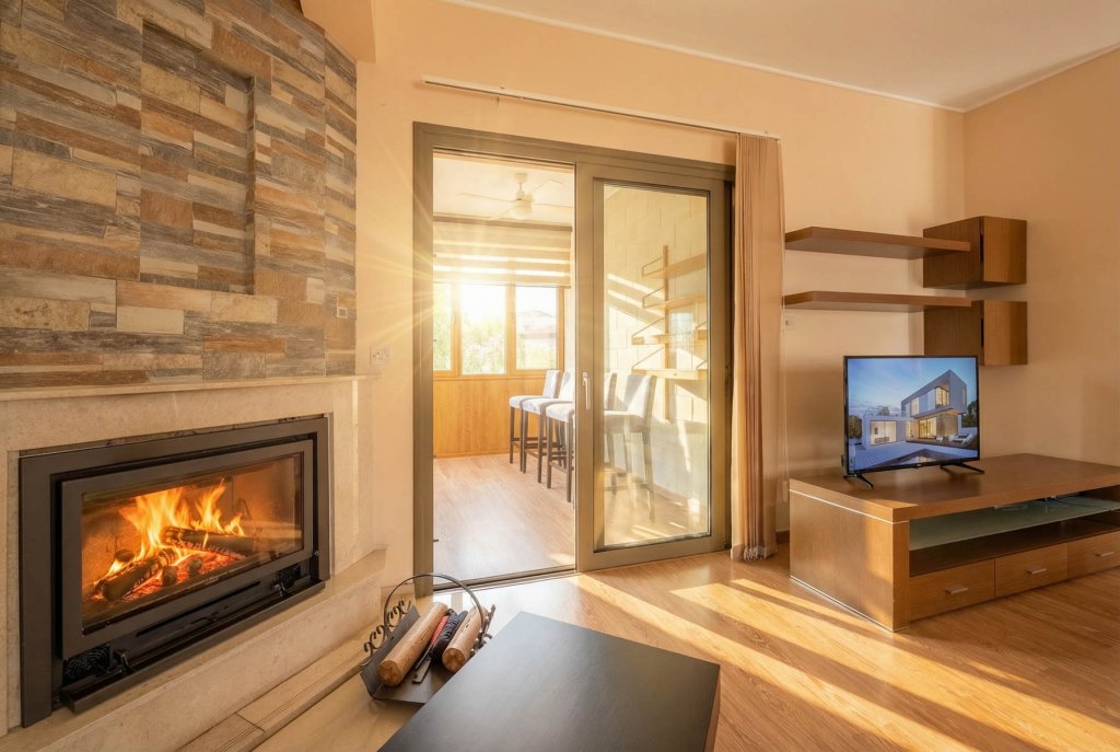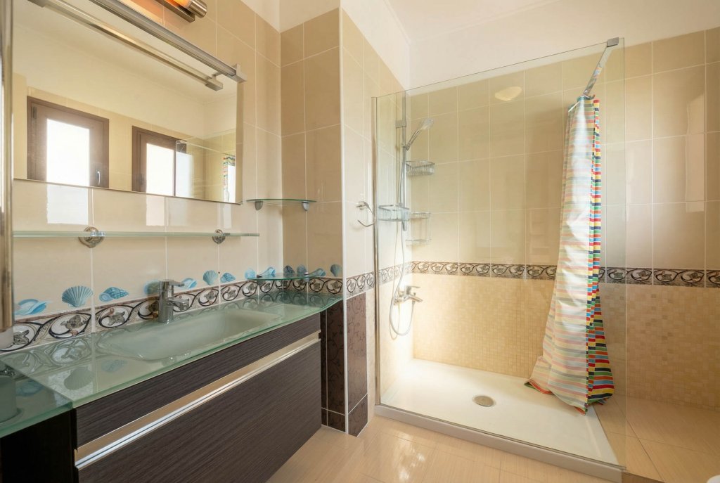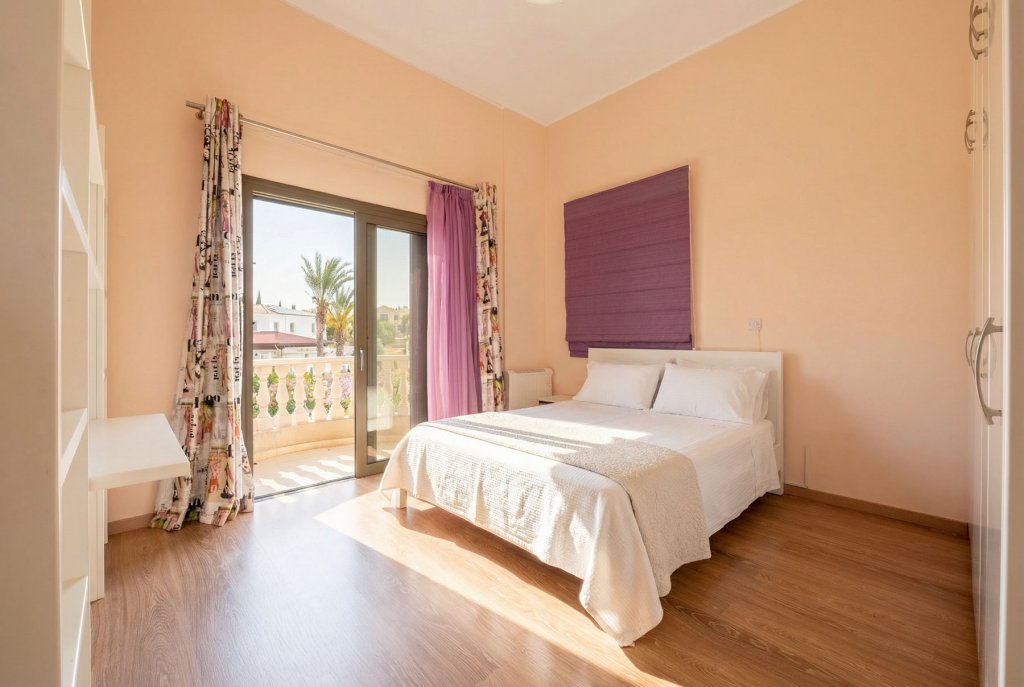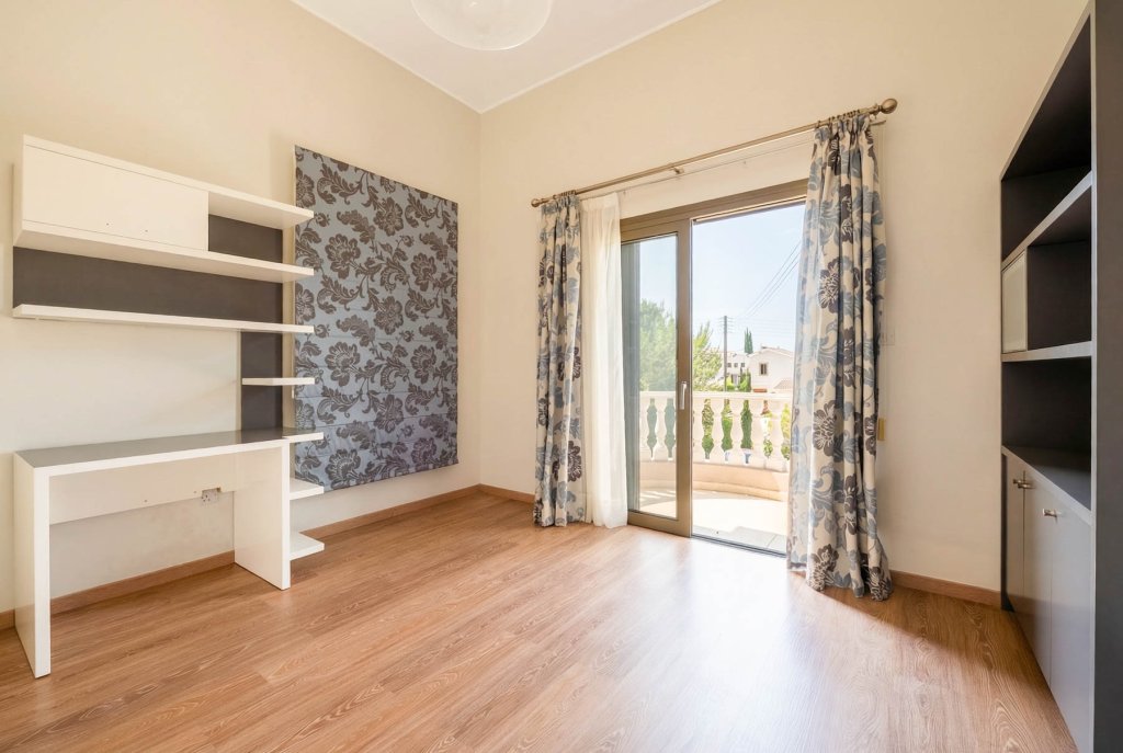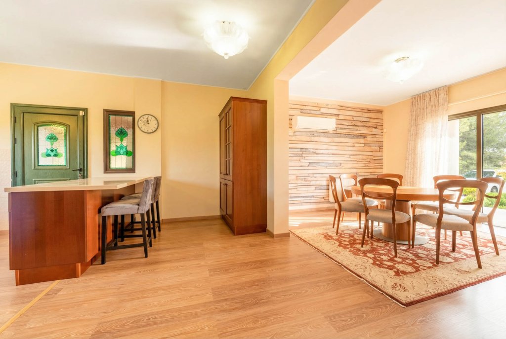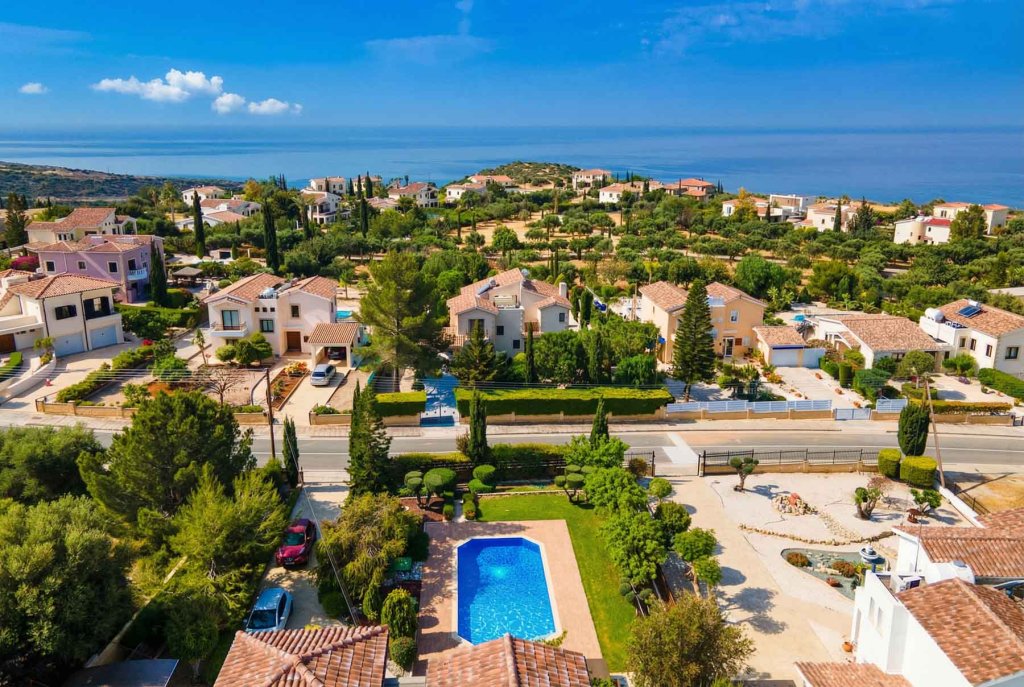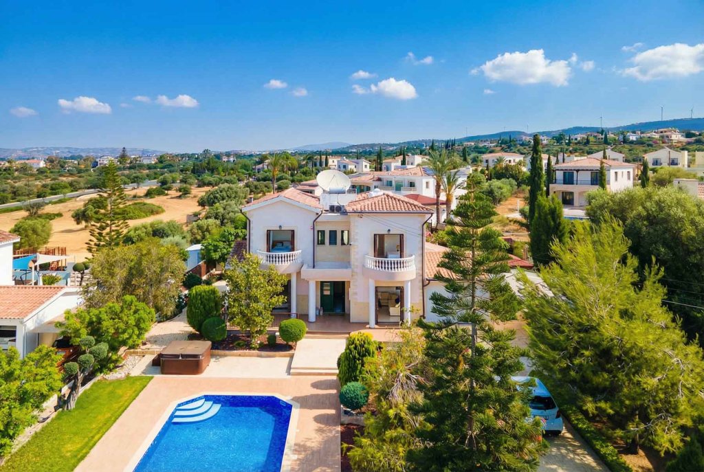 A cosy location near Pafos overlooking the coast amidst unspoilt nature. It is here that a chic, spacious two-storey villa with 4 bedrooms and an office overlooking the sea is built in a traditional Mediterranean style. The villa is part of a well-maintained, gated development comprising private residences and is situated on a spacious plot offering total privacy. The complex is located within the grounds of a renowned golf resort with a number of amenities including a golf club, restaurant, cafe, administration and golf academy. The villa offers a cosy living room with a fireplace, a kitchen and a dining room, spacious bedrooms and an office with garden and sea views, an extra work space and several bathrooms. Stylish furniture and appliances are in excellent condition and everything necessary for living is in place. Even on chilly winter evenings or hot summer weather, the house is cosy and comfortable inside thanks to the excellent thermal insulation. On the large plot of almost 1500 sq. m. there is a large private pool, a mature garden in Mediterranean style with several relaxation areas, including summer verandas, a winter pergola with a fireplace, lawns, a playground and a barbecue area.