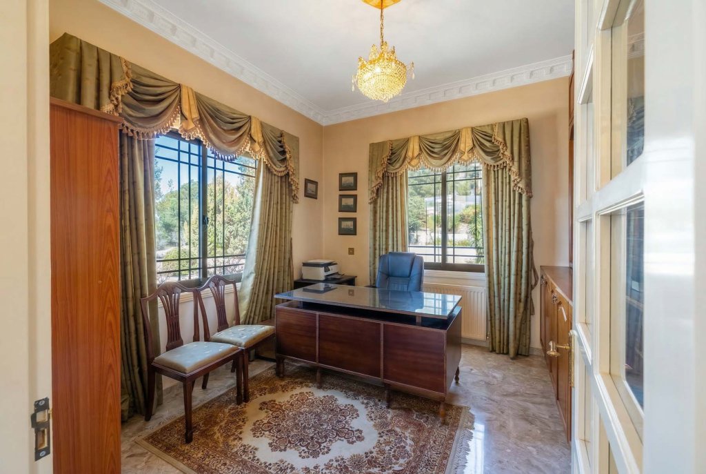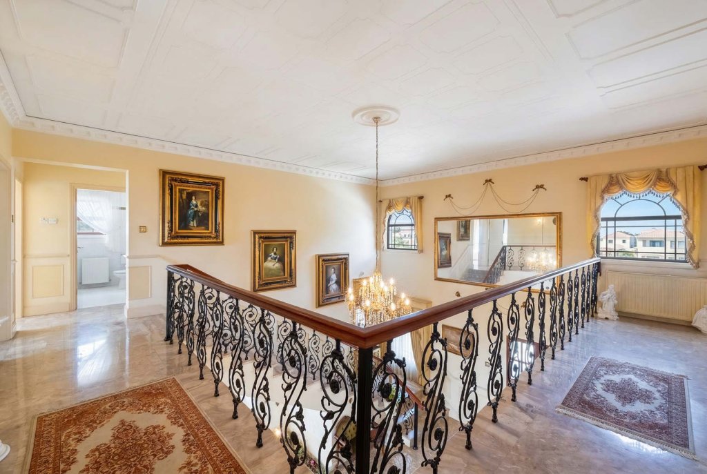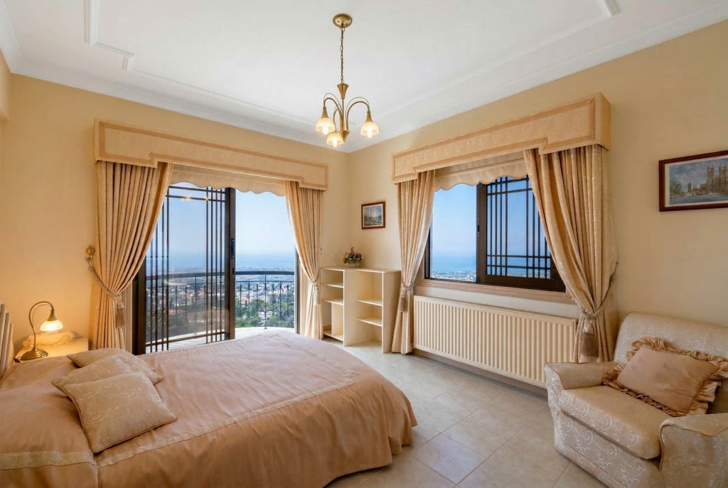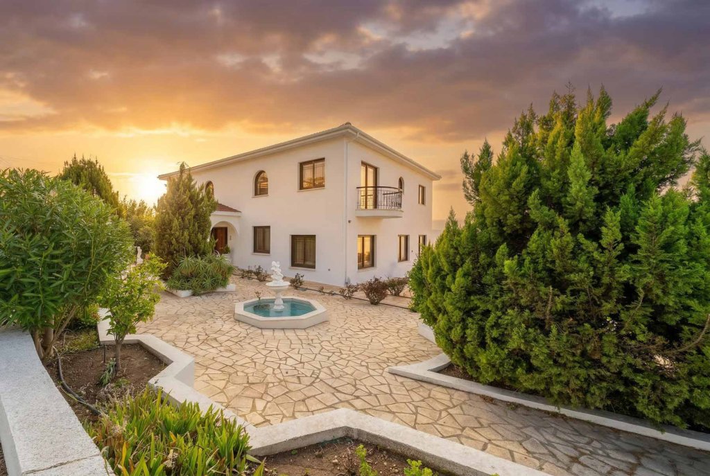 Discover this stunning villa offering breathtaking unobstructed panoramic sea and mountain views in sought-after Tala. Positioned next to a dedicated green area, this exceptional property combines elegance, space, and tranquility. The entrance level features a spacious living area, separate kitchen, laundry room, guest WC, and office. Upstairs, four generously proportioned bedrooms await — two with en-suite bathrooms and two sharing a family bathroom. The luxurious master suite boasts a walk-in wardrobe, en-suite, and a private veranda showcasing spectacular panoramic sea views. The lower level offers a covered garage for four cars, a separate maid's room with shower, and a wine cellar - perfect for entertaining. Outside, enjoy expansive verandas, a BBQ area, and mature landscaped gardens. The villa features central heating throughout and is in excellent condition, ready for immediate enjoyment. This is a rare opportunity to own a meticulously maintained home in one of Paphos' most desirable locations.