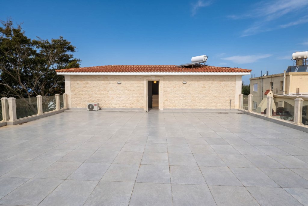 Defined by its layered layout and elevated outdoor spaces, this residence offers a composed balance between privacy, functionality, and everyday comfort. The interior is thoughtfully arranged across two levels, where five well-proportioned bedrooms and five bathrooms are distributed to create a natural sense of separation between private and shared areas. Three bedrooms are positioned on the lower level, while two are placed above, allowing for a flexible living arrangement suited to both family use and hosting guests. A spacious rooftop terrace introduces an additional dimension to the home, opening onto partial sea views and providing a quiet setting for relaxation above the main living areas. This upper level becomes a natural extension of the residence, designed for both retreat and informal entertaining. The property is currently in the final stages of administrative completion, with the title deed in process, while pedestrian pathways within the development are being completed as part of the overall environment. Combining a well-considered layout with elevated outdoor living, this residence presents a refined and versatile lifestyle opportunity.