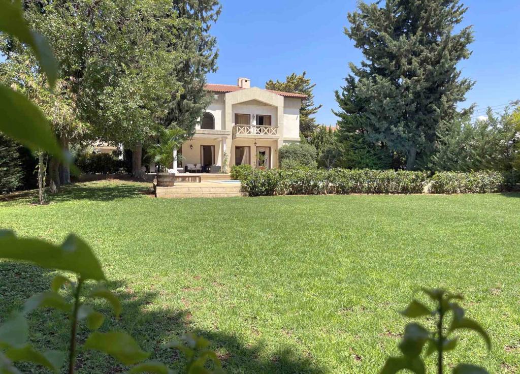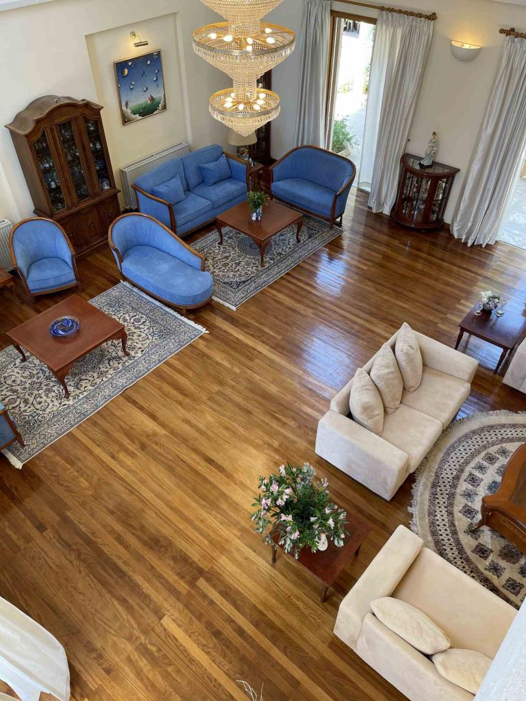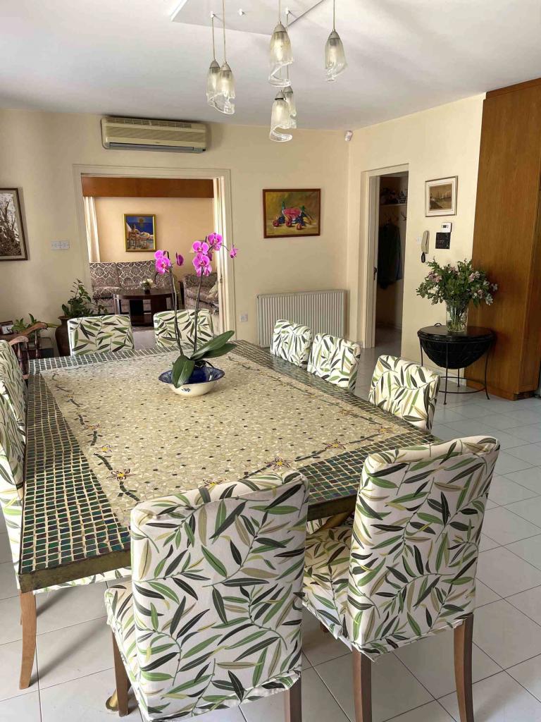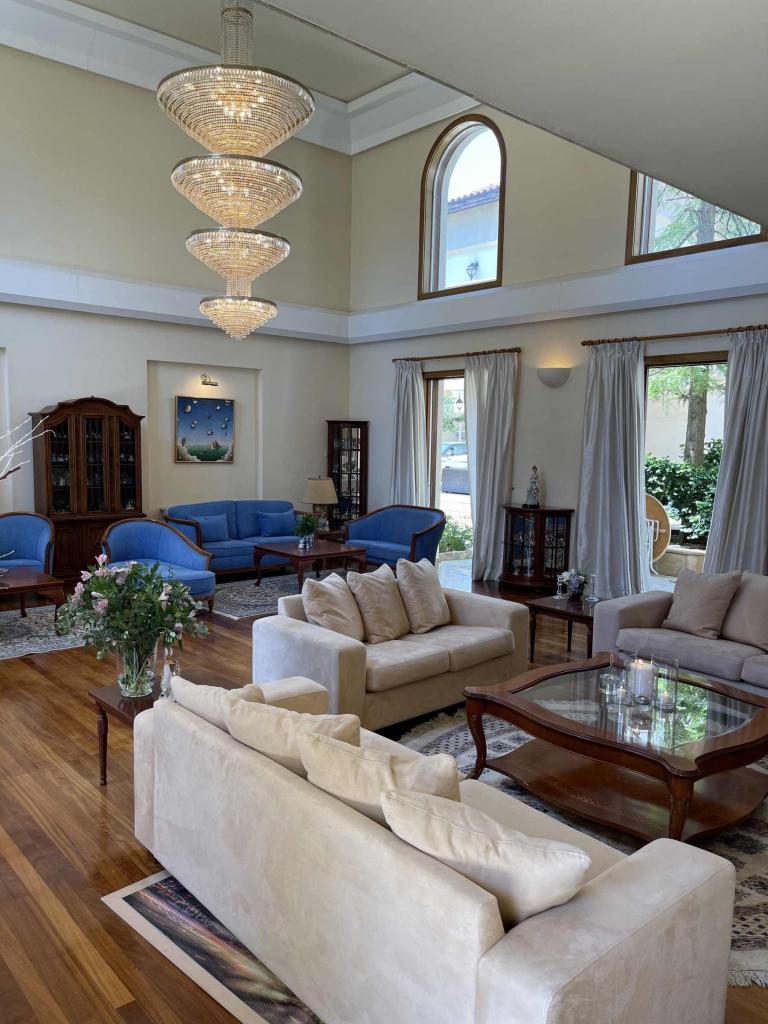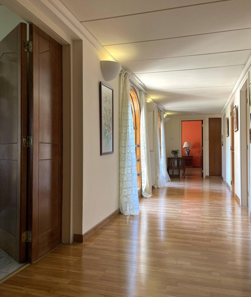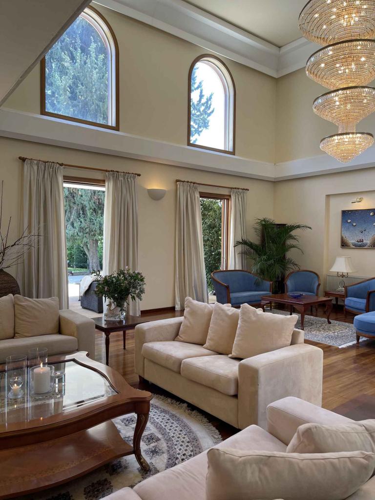This spectacular 5+ bedroom residence sits in a quiet residential area of Ekali, Limassol, with greenery and great aesthetics all around. The Heritage private school, supermarket, wide variety of shops are in vicinity, making this a perfect option for a permanent residence in Cyprus. The property is a two storey house with a spacious basement and impressive ceiling heights. It was meticulously designed in a classic manner by one of the leading architects to convey amazing family lifestyle. The 2367 sq.m. plot offers beautifully landscaped mature gardens with over 600m2 of lawn, a large swimming pool and stone-paved patios. The entry level has a large entrance area with bar, large double living room, formal dining room, guest toilet, wardrobe, playroom, kitchen with dining area, TV room, toilet, laundry room, wine cellar and a storage room. The upper floor has an office/multi-purpose area and 4 bedrooms - master bedroom with walk-in wardrobe and en-suite bathroom, 2 bedrooms with a shared bathroom and toilet and extra wardrobe, 1 bedroom with en-suite bathroom and a toilet. The maid’s room, storage room, mechanical room are all in the basement area.