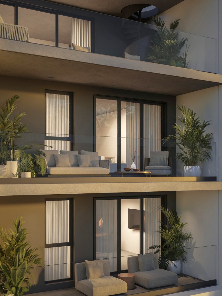 Расположенный на возвышенности в престижном районе Айос Афанасиос, этот изысканный жилой проект задаёт новый стандарт современного образа жизни в Лимассоле. В его состав входят тщательно продуманные апартаменты с одной и двумя спальнями, а также пентхаусы с частными кровельными садами, где архитектурная выразительность сочетается с продуманной функциональностью. Тихая и одновременно удобная локация обеспечивает быстрый выезд на трассу, близость школ и всей необходимой инфраструктуры, а также лёгкий доступ к морю и центру города. Панорамные виды на море, горы и городской силуэт создают ощущение пространства и открытости, оставаясь частью повседневной жизни. Центром притяжения становится просторный общий бассейн, окружённый озеленёнными зонами отдыха. Апартаменты отличают увеличенная высота потолков, панорамные алюминиевые окна с терморазрывом, итальянские кухни, встроенные шкафы, паркетные покрытия и качественная керамическая отделка. Пентхаусы дополнены кровельными террасами с возможностью обустройства зоны барбекю, джакузи и перголы. Энергоэффективность класса A, подготовка под фотоэлектрические системы и современные строительные стандарты обеспечивают надёжность, комфорт и инвестиционную привлекательность проекта в одном из самых востребованных районов города.