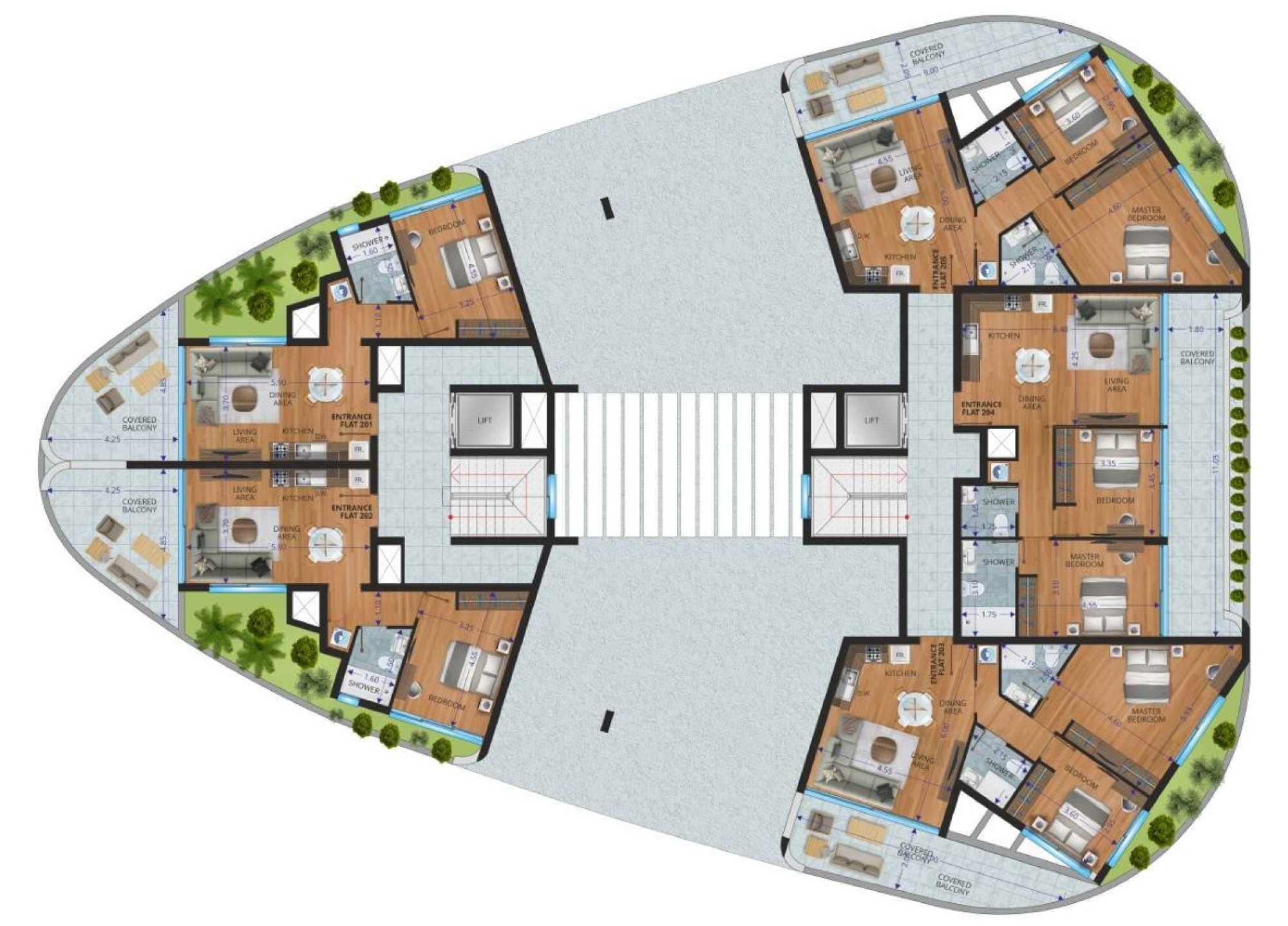 Этот современный жилой комплекс расположен в престижном и активно развивающемся районе Ливадия, сочетая удобство городской инфраструктуры с атмосферой спокойствия и уюта. Удобный доступ к школам, магазинам и и основным автомагистралям, а также близость к центру Ларнаки, пляжам и международному аэропорту делают проект идеальным выбором как для проживания, так и для инвестиций. Закрытая территория комплекса включает ухоженные зелёные зоны, просторный бассейн, джакузи, элегантные лаунж-пространства и специально оборудованные зоны для семей с детьми, включая игровую площадку. Проект предлагает современные апартаменты с одной и двумя спальнями, продуманные для комфортной повседневной жизни. Светлые интерьеры с открытой планировкой, просторные крытые веранды и качественная отделка формируют ощущение простора и гармонии. Пентхаусы дополнены приватными террасами на крыше, идеально подходящими для отдыха на свежем воздухе. Комплекс построен с применением современных технологий и экологичных решений: высокоэффективная теплоизоляция, класс энергоэффективности A, солнечные панели и подготовка для установки зарядных станций для электромобилей. Этот проект создан для тех, кто ценит современный ритм жизни, объединяя эстетику дизайна, практичность планировок и безупречное качество.