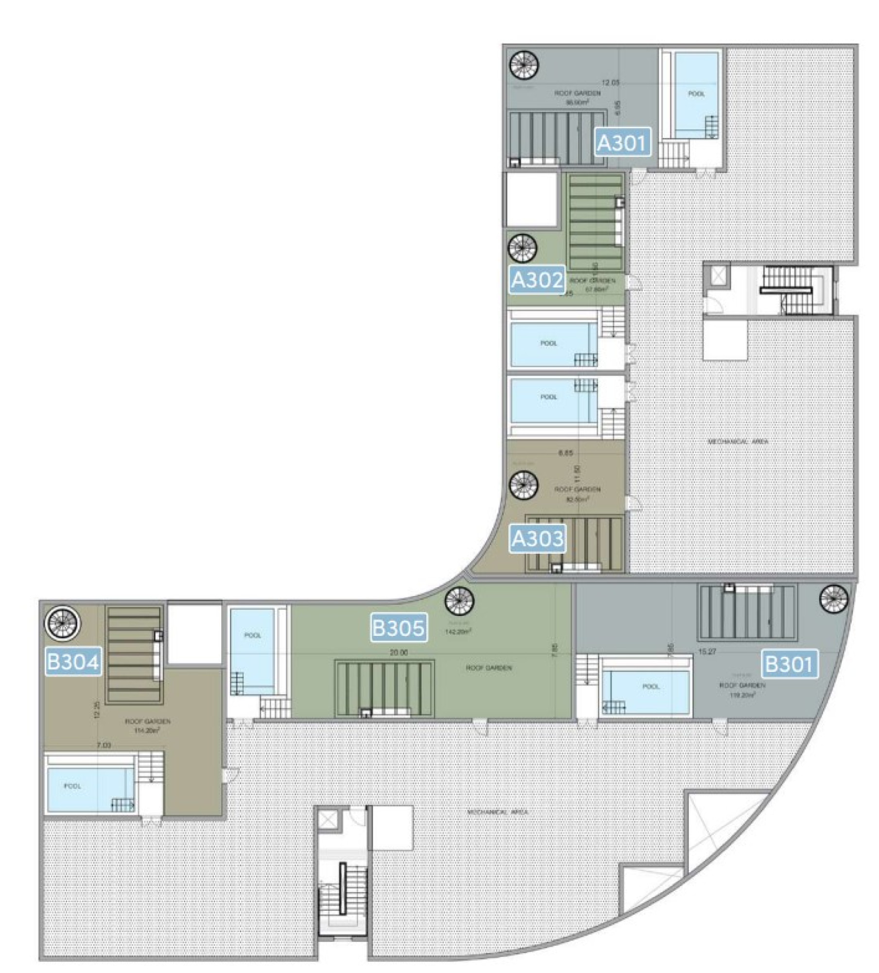 | Площадь сада на крыше | 142.20 m2 |