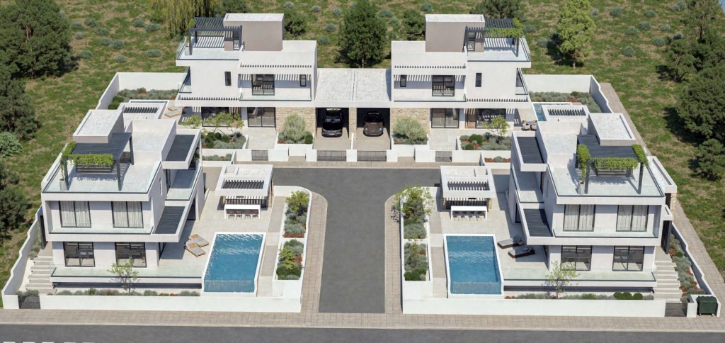 Этот камерный проект современных вилл расположен в одном из давно сложившихся жилых районов Пафоса и предлагает продуманный формат частной жизни без лишнего шума и суеты. Всего четыре отдельно стоящих дома образуют закрытое и гармоничное пространство, организованное вокруг приватной внутренней дороги, что обеспечивает высокий уровень уединения, безопасности и ощущения исключительности. Каждая вилла отличается просторными интерьерами с открытыми жилыми зонами, плавно переходящими в ухоженные сады и к собственному бассейну. Панорамные окна наполняют пространство естественным светом, подчёркивая лаконичную архитектуру и создавая лёгкую, спокойную атмосферу. Внешние зоны продуманы как для повседневного отдыха, так и для приёма гостей, дополняя образ комфортного семейного дома. Расположение удачно сочетает тишину жилого района с удобным доступом ко всей городской инфраструктуре. Пляжи, торговые центры, школы, рестораны и сервисы находятся неподалёку, что делает проект привлекательным как для постоянного проживания, так и для инвестиционных целей. Высокие стандарты строительства, энергоэффективные решения и ограниченное количество вилл формируют редкое предложение с долгосрочной ценностью в одном из самых востребованных районов Пафоса.