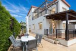 Представьте утро, когда перед вами открываются бескрайние панорамы Средиземного моря — виды, которые останутся неизменными на протяжении всей жизни и не будут перекрыты застройкой. Расположенная в тихом тупике, эта вилла с четырьмя спальнями предлагает редкое сочетание приватности и природной выразительности. Уже при входе пространство раскрывается через элегантный коридор, ведущий в основную гостиную, где панорамные окна «в пол» обрамляют морской горизонт, превращая его в естественную часть интерьера. Планировка первого уровня продумана с учётом удобства: здесь расположена многофункциональная спальня с системой хранения, гостевой санузел, а также кухня с дополнительной рабочей зоной и постирочной. На втором уровне находятся три спальни с собственными ванными комнатами, объединённые просторной верандой, ориентированной на закатные виды. Внешнее пространство дополняет образ дома: подогреваемый бассейн и зона барбекю создают атмосферу для отдыха и встреч на фоне морского пейзажа. Это не просто дом — это возможность каждый день жить в окружении средиземноморских видов.