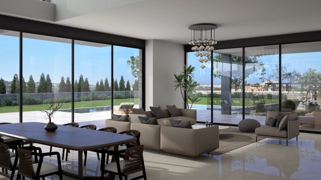 Эта современная вилла расположена на возвышенном участке престижного прибрежного курорта и открывает захватывающие панорамные виды на Средиземное море, гольф-поля и природный ландшафт побережья Пафоса. Архитектура дома выстроена вокруг идеи света, пространства и приватности, создавая гармоничную среду для жизни, в которой эстетика сочетается с абсолютным комфортом. Вилла спроектирована на трёх уровнях с чёткой и логичной планировкой. Основной этаж объединяет гостиную, столовую и кухню, которые плавно переходят в просторные террасы, зоны отдыха и частный бассейн. Панорамное остекление подчёркивает связь интерьера с окружающей природой и наполняет дом естественным светом в течение всего дня. Спальные зоны организованы таким образом, чтобы каждая спальня сохраняла ощущение уединения и была дополнена собственной ванной комнатой. Особое внимание заслуживает цокольный этаж — здесь расположен дополнительный крытый бассейн, а также просторные помещения, которые можно адаптировать под тренажёрный зал, спа-зону, кабинет, домашний кинотеатр или дополнительные спальни для гостей, предоставляя владельцу редкую гибкость в использовании пространства. Участок оформлен ландшафтным дизайном и включает зоны для отдыха и приёма гостей на открытом воздухе, создавая атмосферу приватного курорта. Высокое качество отделки и продуманность архитектурных решений подчёркивают статус и индивидуальный характер виллы. Резиденты получают доступ ко всей инфраструктуре и сервисам курорта, что обеспечивает высокий уровень комфорта и безупречное обслуживание. Этот объект представляет собой редкое сочетание приватности, архитектурной выразительности и высокого уровня жизни в одном из самых престижных районов западного побережья Кипра.